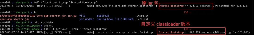 第二个 jar 包更大一点,效果更明显,启动耗时从 220s 减少到 123s