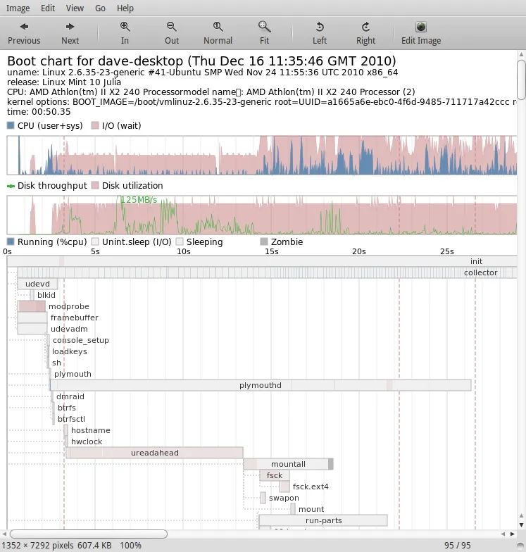 在 Linux 中有一个杀手级的工具 bootchart 来分析 linux 内核启动的问题,它把启动过程中所有的 IO、CPU 占用情况都做了详细的划分,我们可以很清楚的看到各个时间段,时间耗在了哪里,基于这个 chart,你就可以看看哪些过程可以延后处理、异步处理等。