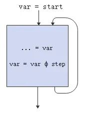 如图所示,循环中归纳变量var的起始值为start,迭代的方式为ϕ,步长为step;