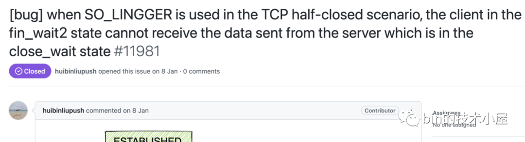 这个 Bug 导致主动关闭方在 FIN_WAIT2 状态下无法接受到来自被动关闭方在 CLOSE_WAIT 状态下发送的数据。随后又详细分析了这个 Bug 的整个修复过程。