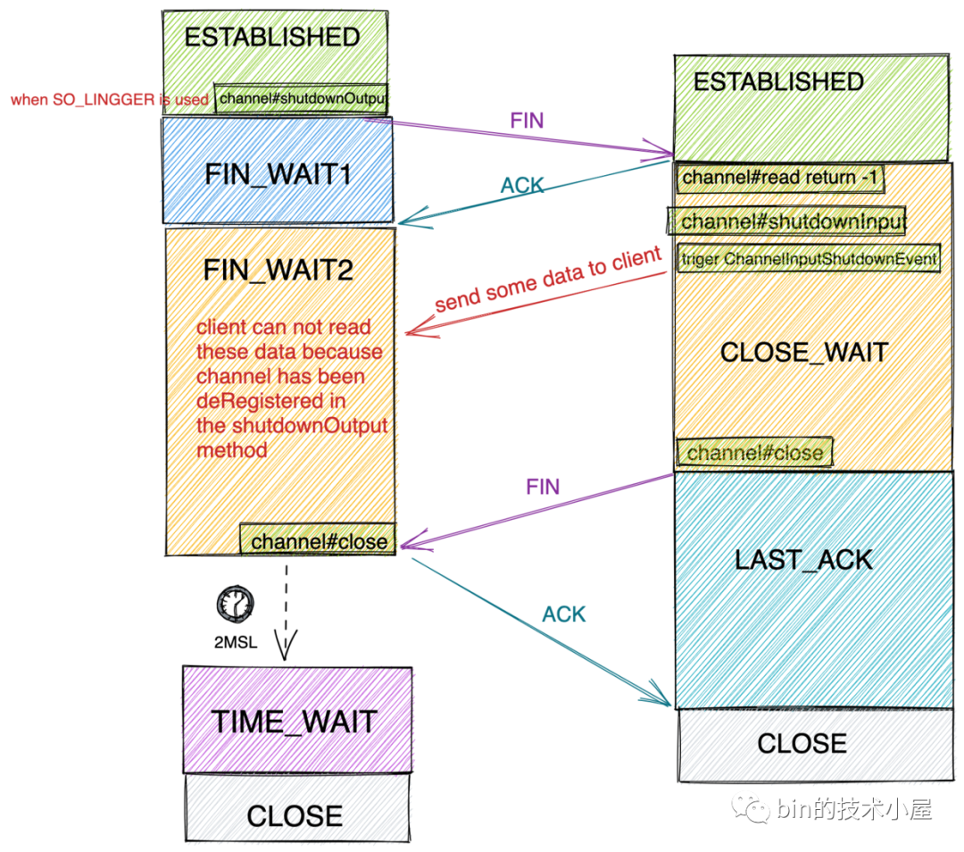 其中我们还穿插介绍了 SO_LINGER 选项对于 TCP 连接关闭行为的影响,以及 netty 针对 SO_LINGER 选项的处理过程。