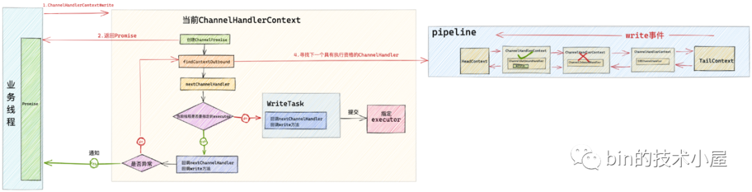 在 pipeline 中触发 ChannelInputShutdownEvent 事件,我们可以在 ChannelInputShutdownEvent 事件的回调方法中,向客户端发送遗留的数据,做到真正的优雅关闭。 这里就是图中处于 CLOSE_WAIT 状态下的服务端在半关闭场景下可以继续向处于 FIN_WAIT2 状态下的客户端发送数据的地方。