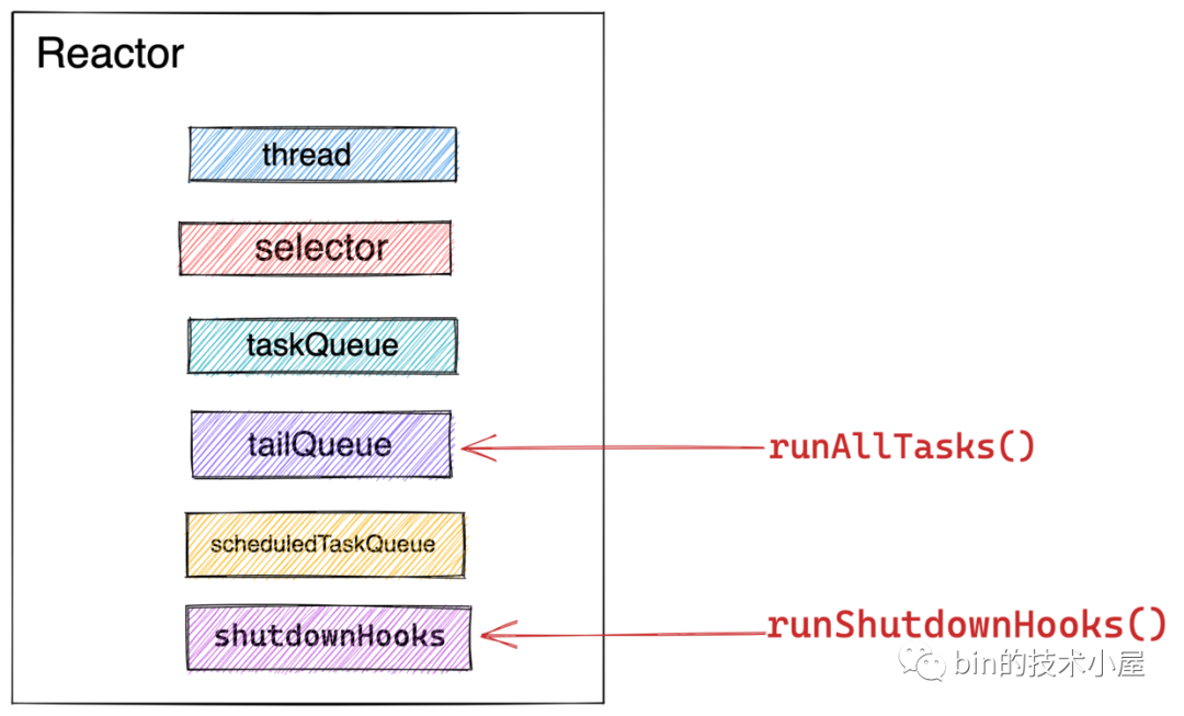当 Selector 完成关闭,并清理掉 Reactor 线程中所有的 TheadLocal 缓存之后,Reactor 的状态变为 ST_TERMINATED 。