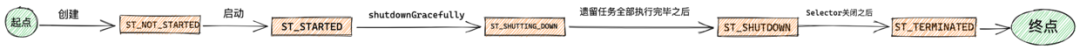 在 Reactor 被创建出来之后状态为 ST_NOT_STARTED。