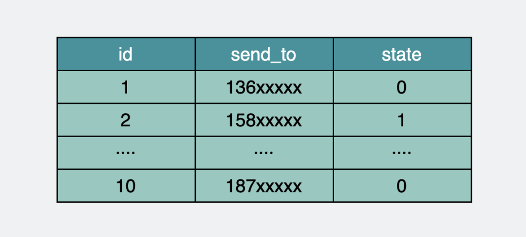 此时还会有一个异步线程不断的捞起未发送(state=0)的短信数据,执行发短信操作,发送成功之后state字段会被置为1(已发送)。也就是说未发送的数据会不断变少。