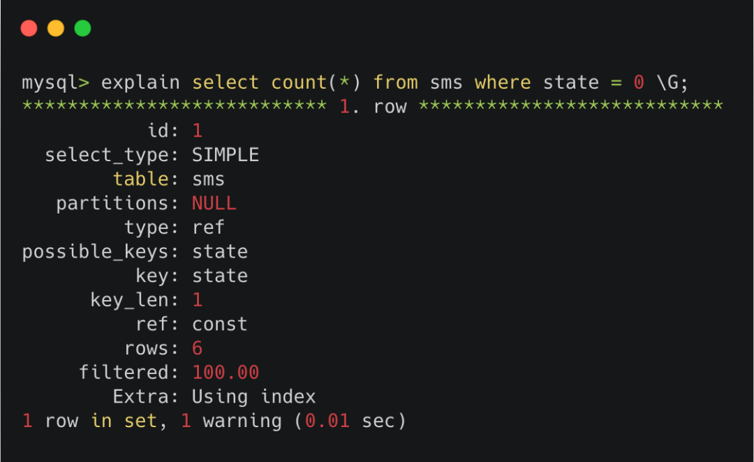 当数据表小的时候,这是没问题的,但当数据量大的时候,比如未发送的短信到了百万量级的时候,你就会发现,上面的sql查询时间会变得很长,最后timeout报错,查不出结果了。