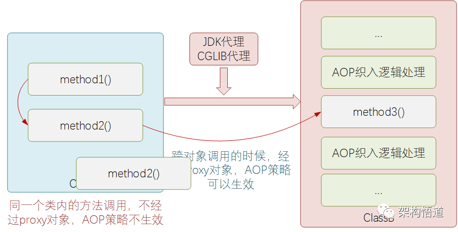 在类内部方法之间相互调用的时候,本质上是类对象自身的调用,而不是使用代理对象去调用,也就不会触发AOP,这样其实Spring也就无法将事务控制的代码逻辑织入到调用代码流程中,所以这里的事务控制就无法生效。