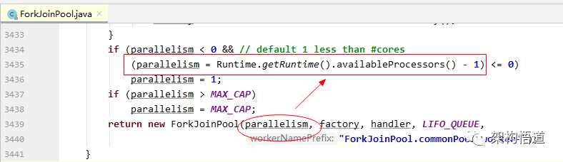上面是Async结尾方法默认使用的ForkJoinPool创建的逻辑,这里可以看出,默认的线程池中的工作线程数是CPU核数 - 1,并且指定了默认的丢弃策略等,这就是一个主要关键点。