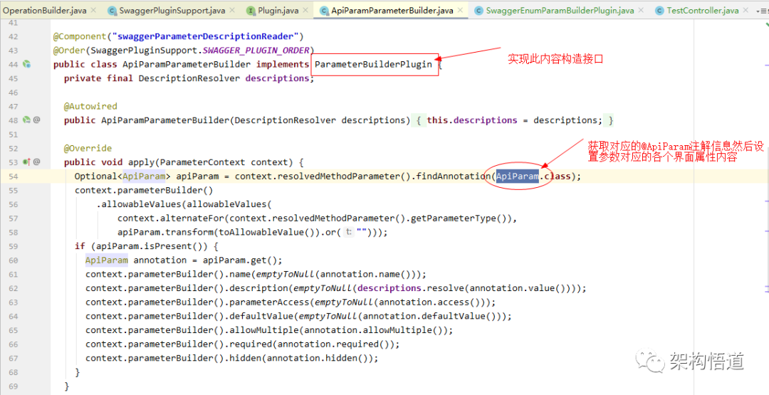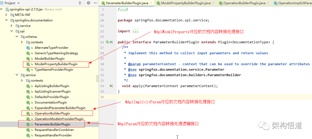 到这里其实问题就已经很明显了,我们可以自定义一个处理类并实现ParameterBuilderPlugin接口,然后将我们的诉求在自定义的处理类中进行实现,这样不就可以实现我们的诉求了吗?