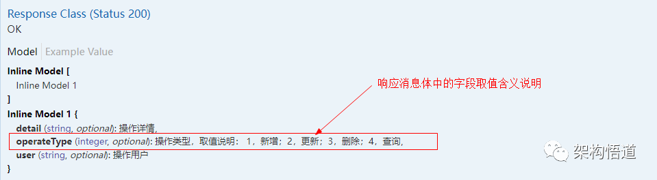 这里就需要我们在接口文档里面将此接口中operateType的可选值以及每个可选值对应的含义信息都说明清楚,这样调用方在使用的时候才知道应该传入什么值。