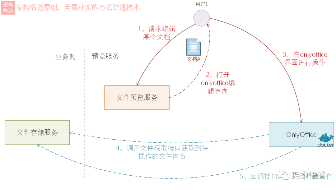 前面有提过,采用OnlyOffice来实现office文档的在线协同编辑,关于OnlyOffice在线编辑的原理,其官网给出的介绍如下: