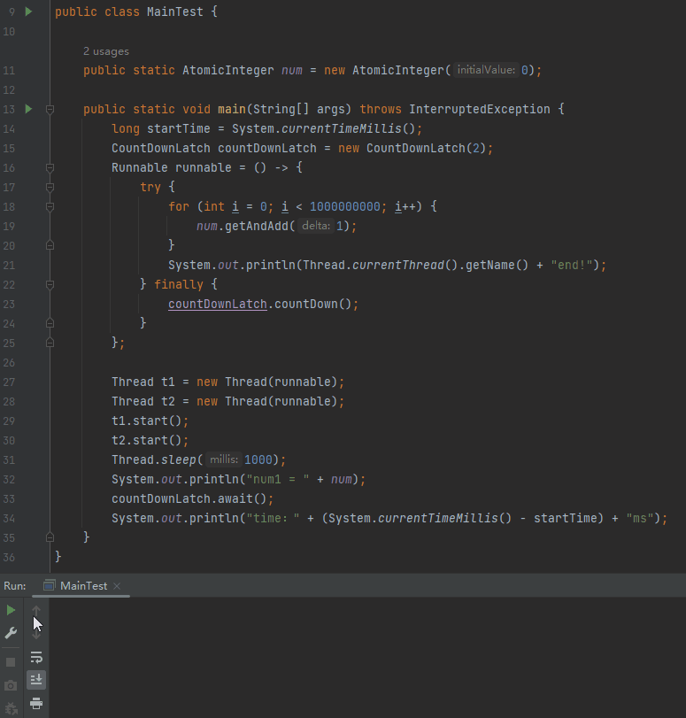 public static AtomicInteger num = new AtomicInteger(0);
