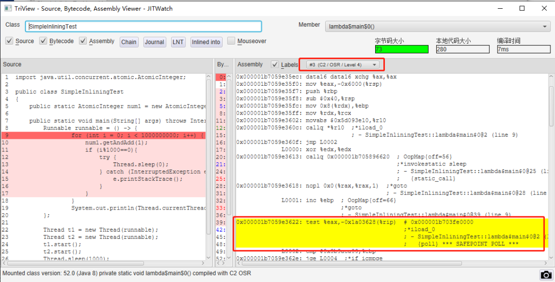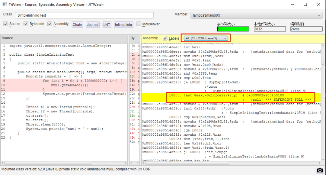 但是这句话其实还是太笼统了,经过 JIT 优化之前和之后,分别是长什么样子的呢,能不能从什么地方看出来安全点确实是没了?