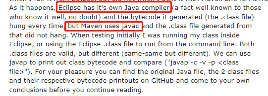 简单来说就是他是在 Eclipse 里面跑的,而 Eclipse 并不是用的 javac 来编译,而是用的自己的编译器。