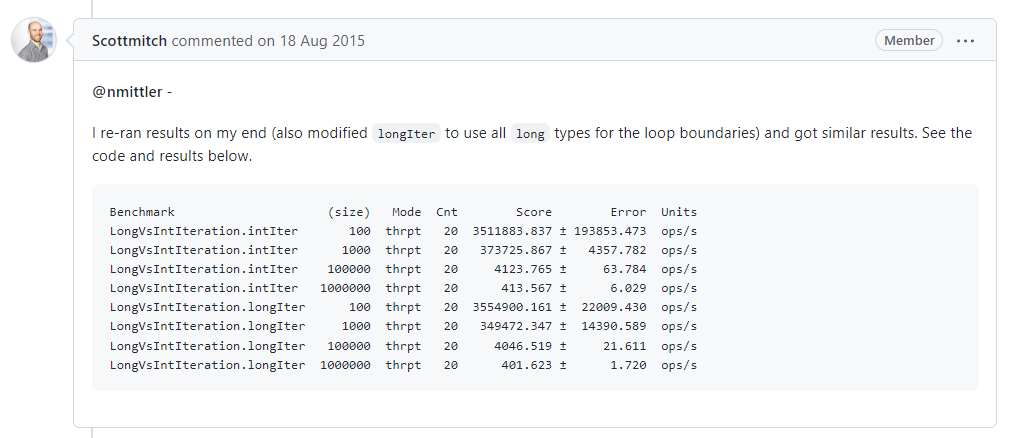 这个 pr 里面讨论的内容非常的多,其中一个争论的点就是循环到底用 int 还是 long。