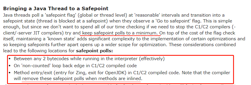 当方法被内联时编译器会删除这些安全点轮询。