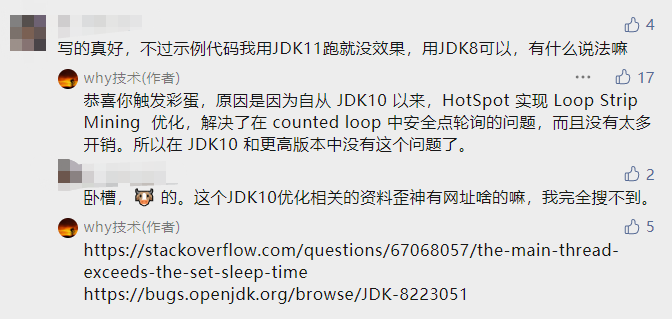 其实我在这里埋了“彩蛋”,这个代码虽然你直接粘贴过去就能跑,但是如果你的 JDK 版本高于 10,那么运行结果就和我前面说的不一样了。