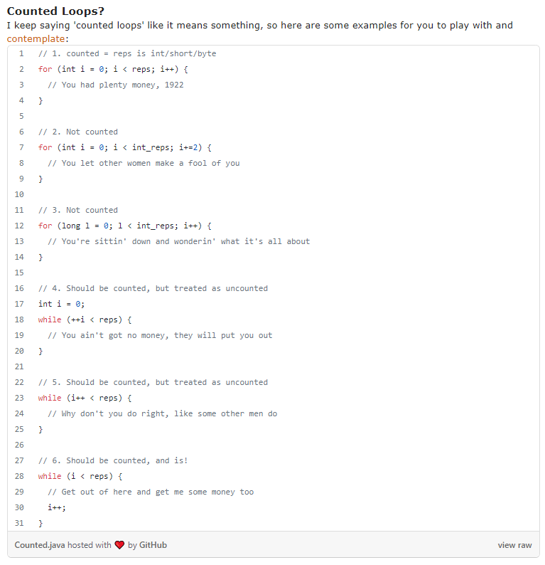 同时在下集中,牛哥还非常贴心的给你贴出了他总结的六种循环的写法,哪些算是“counted Loops”,建议仔细辨别: