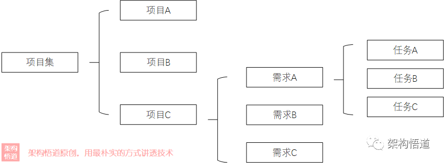 在一个企业级的研发项目事务管理系统里面,包含很多的项目,每个项目下面又包含很多的具体需求,而每个需求下面又会被拆分出若干的具体事项。