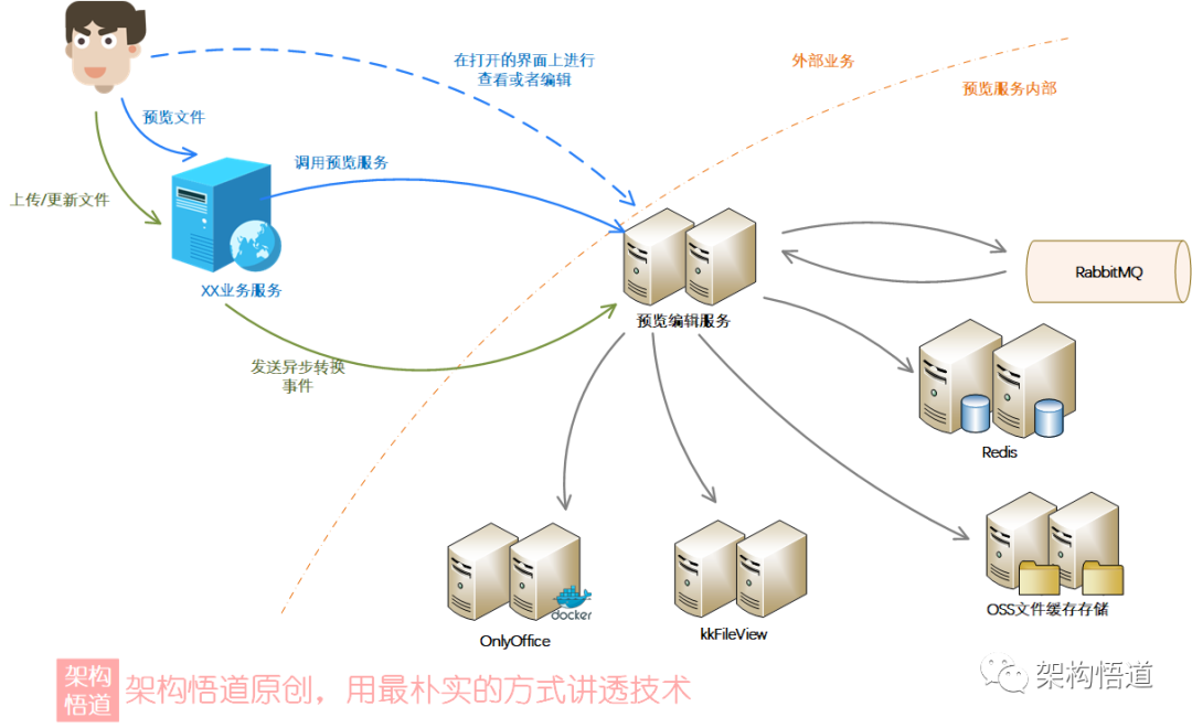 在我此前的一篇文章中,介绍了一个构建通用在线文档预览服务的实际案例,里面对“预览编辑服务”的定位就是一个典型的服务型Adapter,如下图所示。通过预览编辑服务这个Adapter,将文档预览能力所涉及的后端对接OnlyOffice或者对接kkFileView等细节逻辑给屏蔽掉,业务服务通过Adapter进行调用,大大简化了业务的使用复杂度,也保持了业务模块与文档预览服务内部模块之间的耦合。
