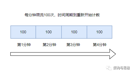 可能存在的问题是:请求分布的不均衡,比如在时间周期1分钟的第1秒,就把100次请求用完了,那么最后59秒都是空白的。也可能直到最后1秒才有大批量的流量
