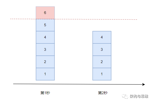 若当前窗口的区间计数器总和超过额定的限制数量8,别区间2使用了5,则区间3最多只能使用剩下3个,后续请求都被丢弃。