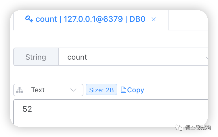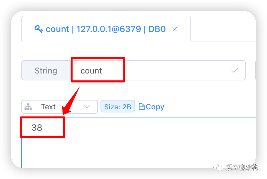 然后到 Redis 中查看数据,count 的值也是递增后的值 38,也不是 null。