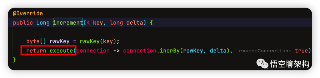 直接看 redisTemplate 递增的方法 increment,如下所示:
