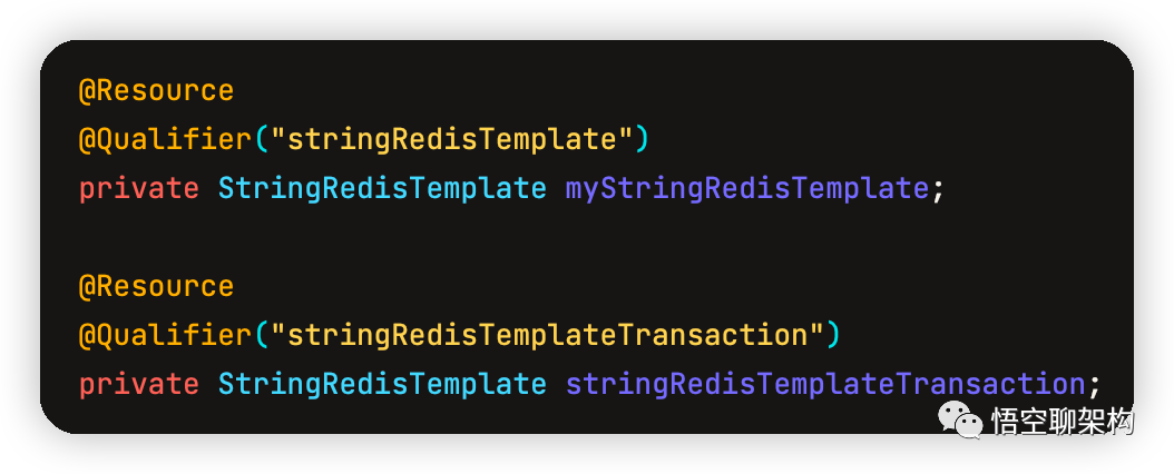 方案二:创建两个 StringRedisTemplate,一个专门用来执行 Redis 事务,一个用来执行普通的 Redis 命令。