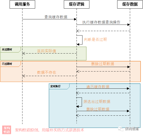 上面一节中,我们已经确定了缓存过期时间的存储策略,也给定了调用方设定缓存时间的操作接口。这里还剩一个最关键的问题需要解决:对于设定了过期时间的数据,如何在其过期的时候使其不可用?下面给出三种处理的思路。