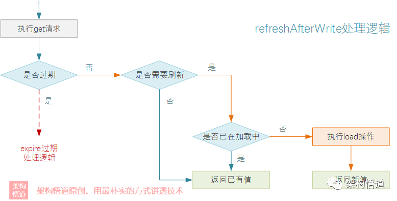 与expire清理逻辑相同,refresh操作依旧是采用一种被动触发的方式来实现。当get操作执行的时候会判断下如果创建时间已经超过了设定的刷新间隔,则会重新去执行一次数据的加载逻辑(前提是数据并没有过期)。