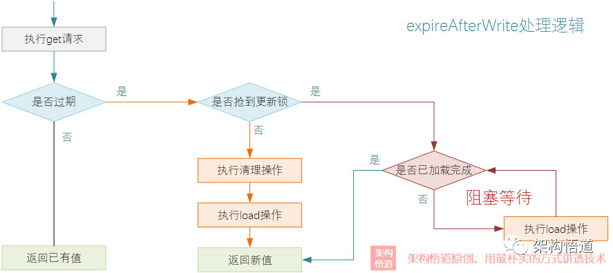 在get执行逻辑中进行数据过期清理以及重新回源加载的执行判断流程,可以简化为下图中的关键环节: