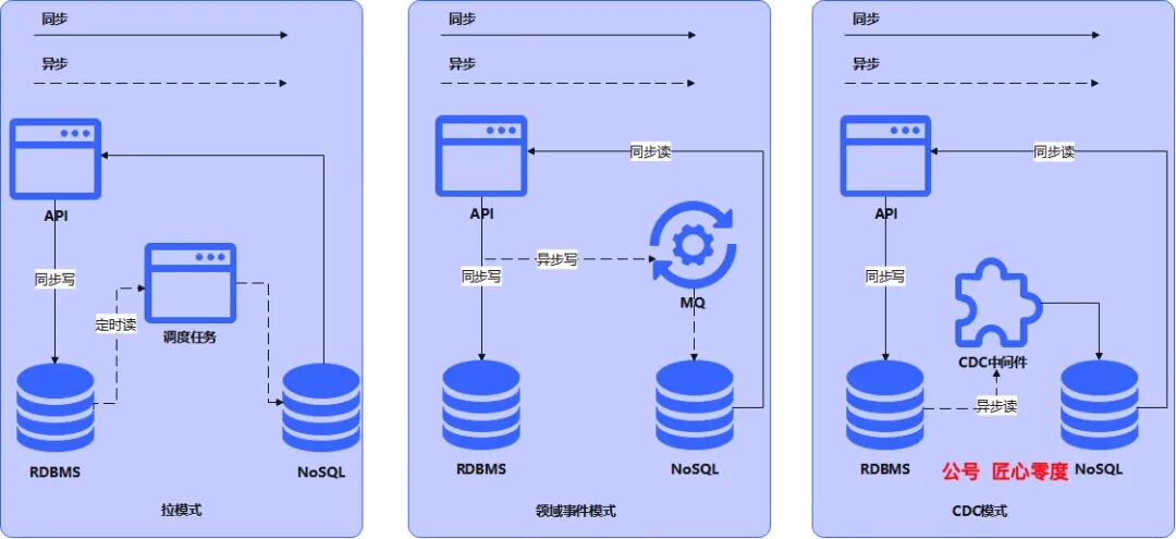 从代码实现角度来看,不同的存储系统只是调用对应的接口API,因此CQRS的难点主要在于如何进行数据同步。