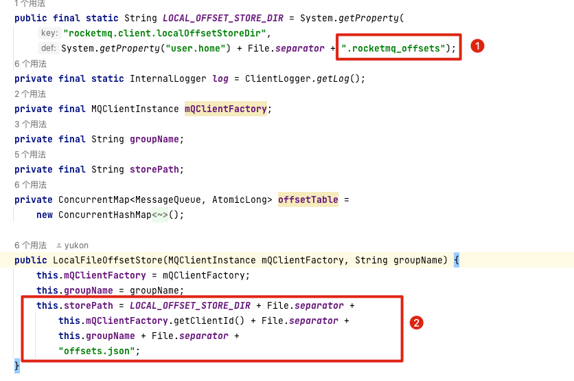 为了破解该问题,首先我们要知道RocketMQ广播消费消费进度文件的存储目录,由于本文遇到的环境是虚拟机环境,结合RocketMQ广播消费的核心实现类LocalFileOffsetStore中如下代码: