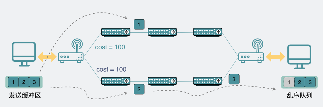 后发的数据包先到是吧,那就先放到专门的乱序队列中,等数据都到齐后,重新整理好乱序队列的数据包顺序后再给到用户,这就是乱序重排机制。
