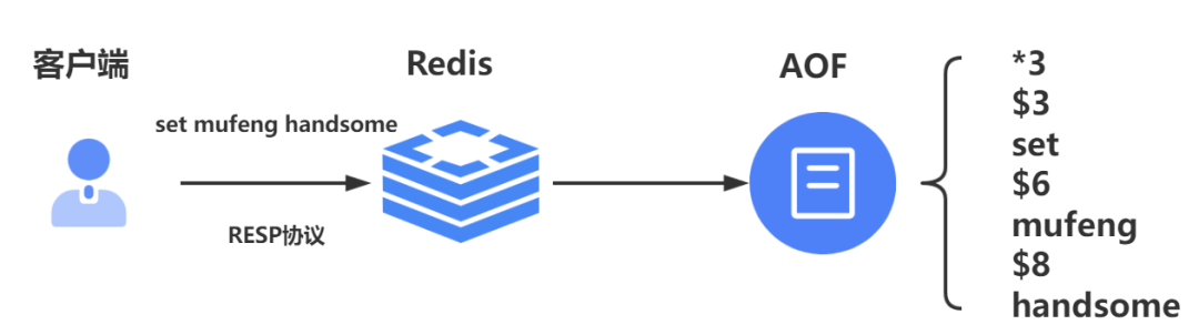 我们来拆解下报文中各个属性的含义,“*3”代表本次操作命令将由三个分布组成,每一部分都是通过"$数字"的形式作为起始,后面为对应的命令、键或者值。如此处的"$6"就表示后面的命令是一个6个字节的键值。所以,appenonly.aof文件中实际保存的就是这种格式的内容。
