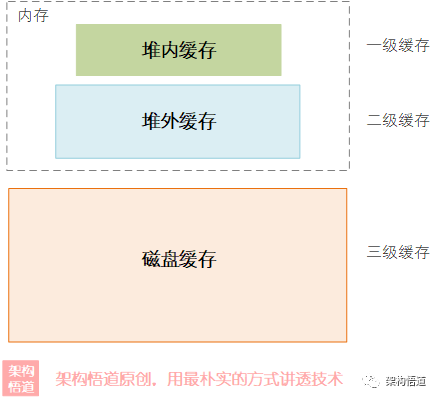 堆内缓存 + 堆外缓存 + 磁盘缓存