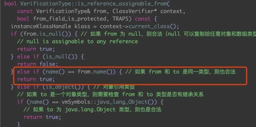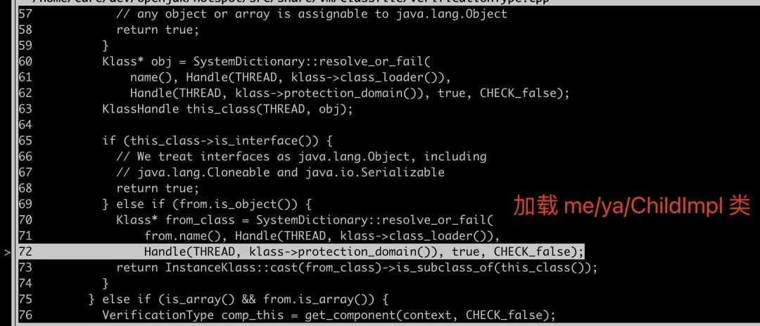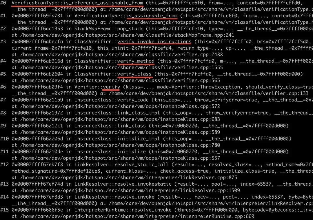 通过简单的代码阅读,找到了一个比较理想的断点来分析这个问题,在函数VerificationType::is_reference_assignable_from 上打一个断点。