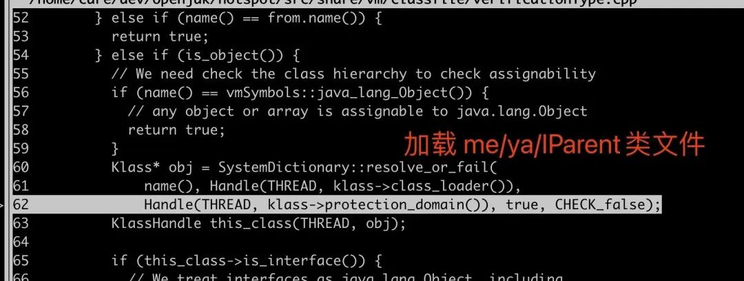 这个时候不会触发 IParent 和 ChildImpl 的类加载。看到这里,可能有同学已经猜到了,是因为多态导致了对应的问题出现。接下来我们从 JVM 源码的角度看一下这个过程。