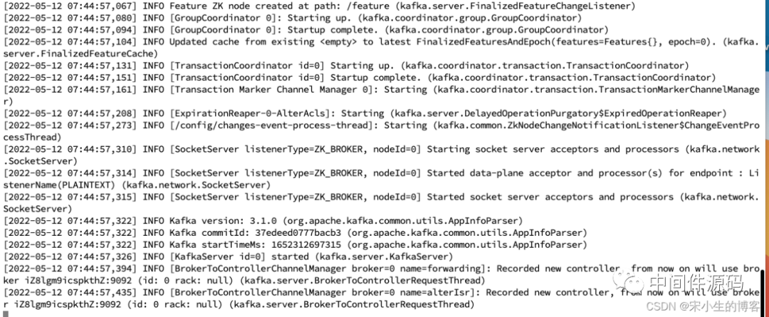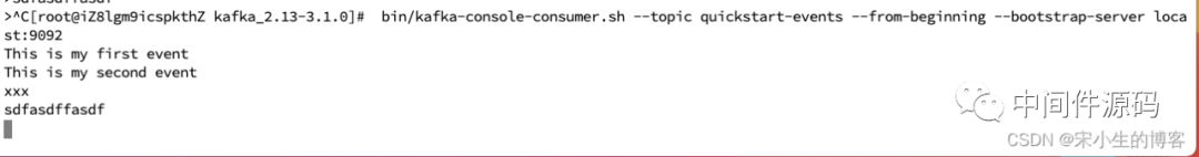 可以看到当前案例中2.x版本使用Kafka是非常简单的,只需要下载好安装包,然后启动Zookeeper、启动Kakfa-Server即可,不过这个案例仅仅是参考自官网的入门级案例,如果想要借助Kafka在生产系统上使用仅仅这些事不够的,另外还需要保证Kafka消息的可靠性,集群的高可用等,如果对kafka更多原理及源码分析感兴趣可以关注《中间件源码》微信公众号订阅吧。