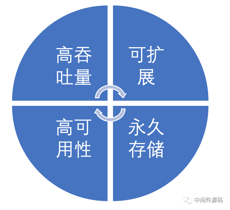 Kafka具有高吞吐量,高可用性,永久存储于可用性的特性如下图所示: