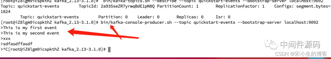 因此,在您编写第一个事件之前,您必须创建一个主题。打开另一个终端会话并运行:
