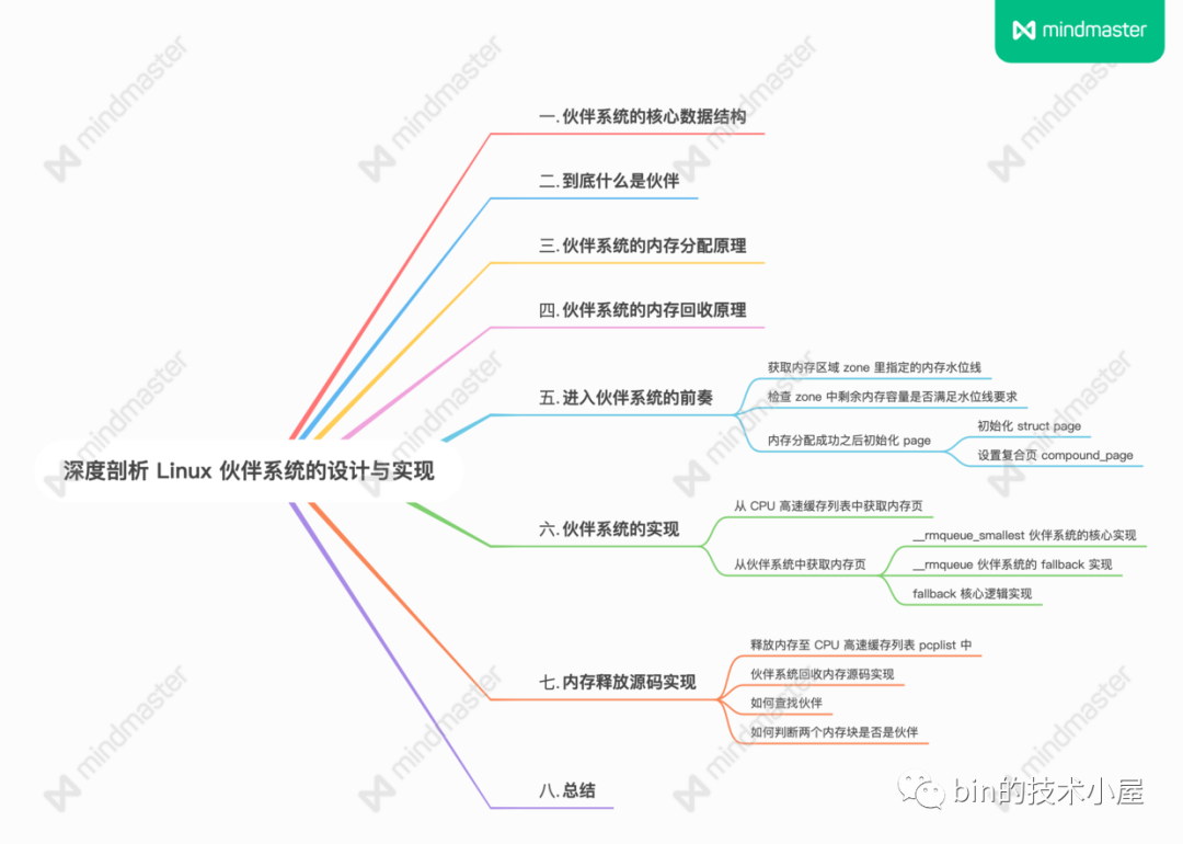 在我们明白了伙伴系统的这些基本概念以及全局框架结构之后,笔者详细剖析了伙伴系统的内存分配原理及其实现,其中重点着墨了从高阶 freelist 链表到低阶 freelist 链表的减半**过程实现,以及内存分配失败之后,伙伴系统的 fallback 过程实现。