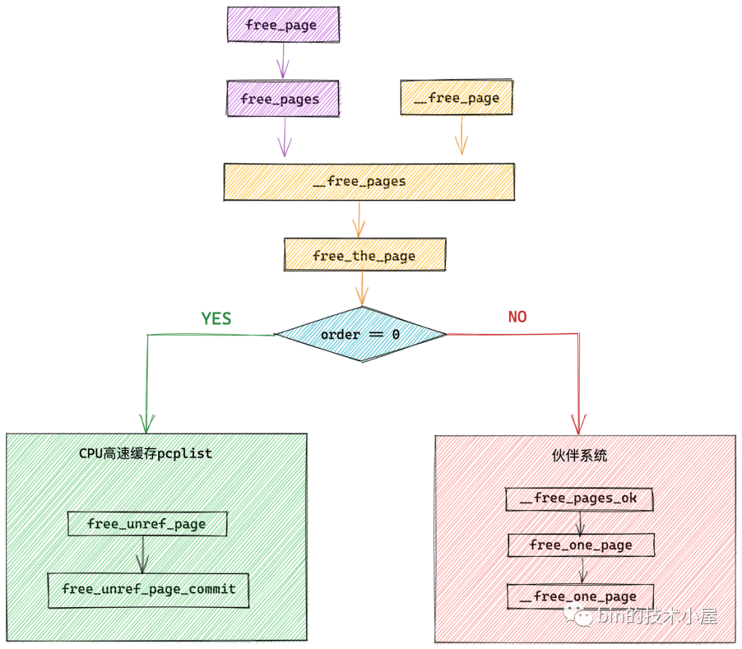 下面我们还是以 5.3 小节中所举的具体例子来剖析内核如何将内存释放回伙伴系统中的完整实现过程。