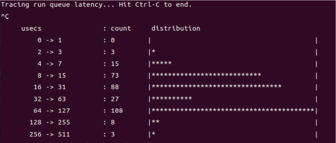 print("Tracing run queue latency... Hit Ctrl-C to end.")