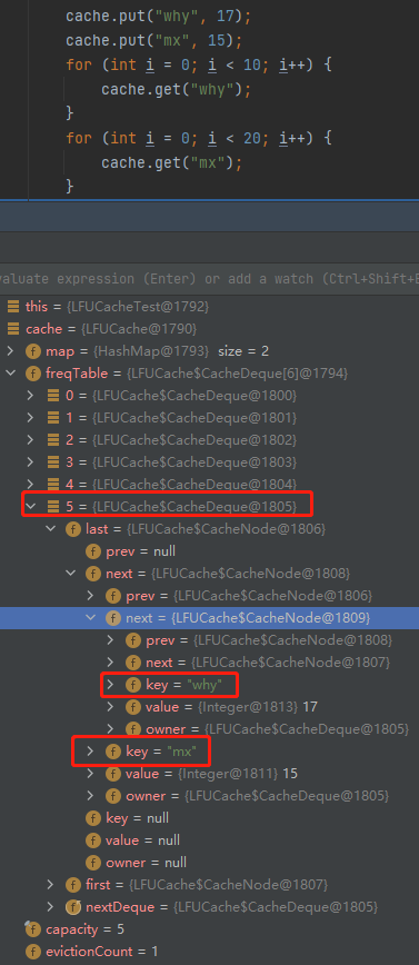 why 会变成这个坑位下的链表中的 last 节点,从而躲避过下一次淘汰。mx 元素被淘汰了。