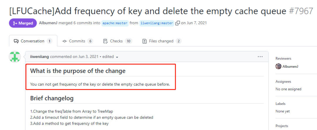 通过链接我们知道,这次提交的目的是优化 LFUCache 这个类,使其能通过 frequency 获取到对应的 key,然后删除空缓存。