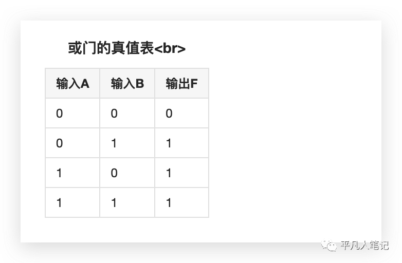 此电路有两个以上输入端,一个输出端;只要有一个或几个输入端是 “1”,或门的输出即为 “1”;而只有所有输入端为 “0”时,输出才为 “0”。