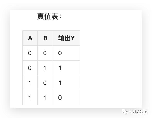 当两个逻辑自变量取值相异时,函数为1;反之,当自变量取值相同时,函数为0;或者说:当两个输入信号相异时有输出,而相同时没有输出。