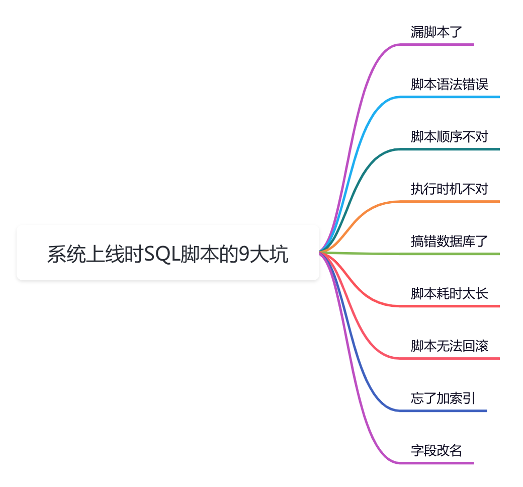 当然系统上线时除了SQL脚本的这些坑之外,还有系统发版失败,代码合错分支,mq消息被pre消费了,无法回滚等等,还有很多问题。